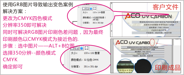 步骤:选中图片——ALT+B位图--选择350分辨--颜色模式CMYK 确定即可